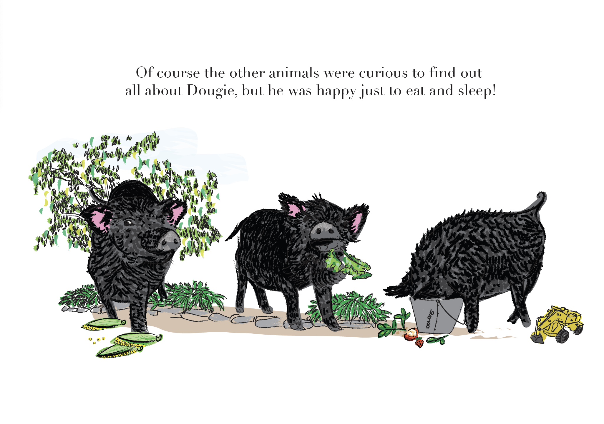 Illustrations created for Book Burleigh Farm and Burleigh Farm’s Cheeky Pig by self published Author Di Hickleton.